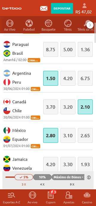 Faça sua Múltipla com 3 seleções ou mais e aumente a sua cota