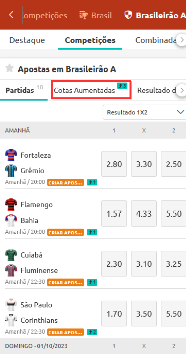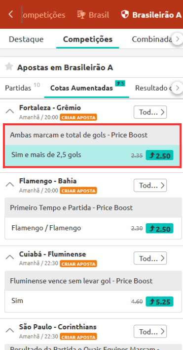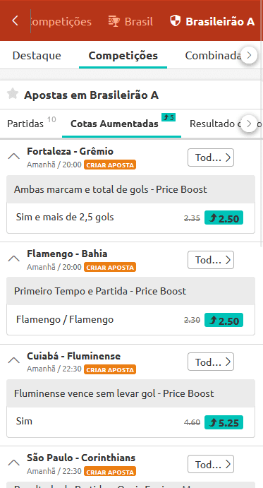 4. Assim, você verá TODAS AS OPÇÕES de Cotas Aumentadas disponíveis para o Brasileirão A.